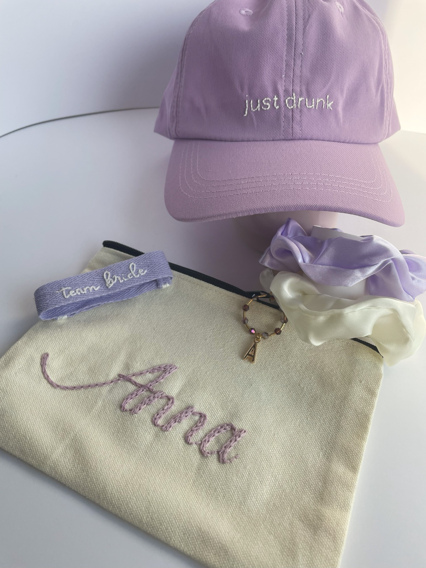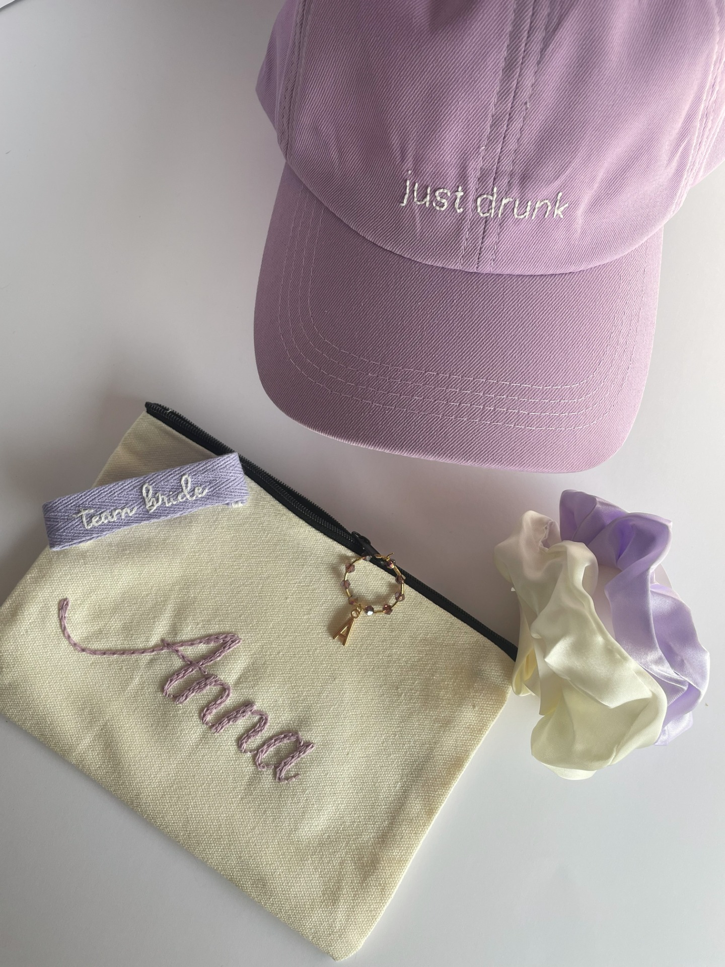 - A menyasszonynak szánt fehér sapka, pamut karkötő és neszesszer esetén a hímzés színe választható